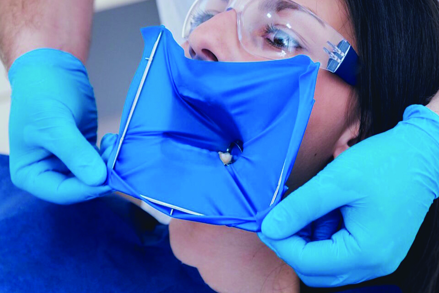 - Next, a rubber dam (a sheet of rubber that isolates the tooth) will be placed around the tooth to keep it dry and free from saliva during the procedure.